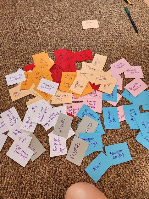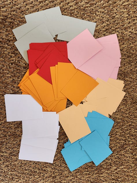 A few months ago, I challenged myself to do a 100 tiny acts to promote my work. But I swapped the long Excel sheets and project plans for cutting up colourful paper and used my fun markers to write my commitments to action.